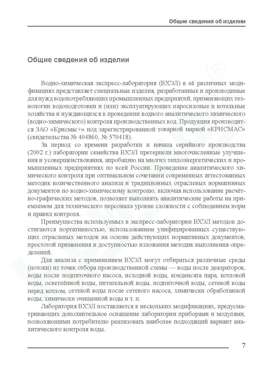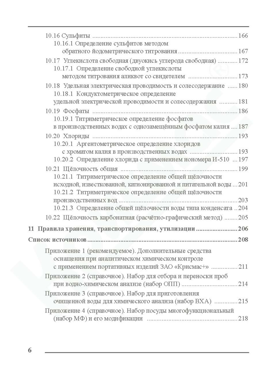 Настоящее издание может использоваться как руководство по аналитическому химическому контролю производственных вод при обеспечении водно-химических режимов на предприятиях, эксплуатирующих тепловые сети, промышленные и отопительные котельные, при эксплуатации судовых установок и т.п. Разработано и произведено ЗАО «Крисмас+».