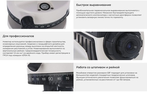 Используя горизонтальный лимб можно определять горизонтальные углы, а сетка нитей поможет определить расстояние до измерительной рейки. Данная модель прошла процедуру поверки, о чем информирует свидетельство, входящее в комплект.