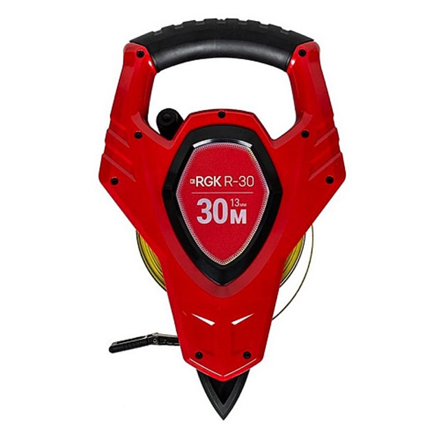 Наконечник в форме петли позволяет надежно закрепить край ленты на крюках и других выступающих элементах конструкций и измерительных приборов. Дополнительный слой нейлона в месте соединения полотна ленты рулетки RGK R-30 с наконечником обеспечивает защиту от излома при частых изгибах ленты.