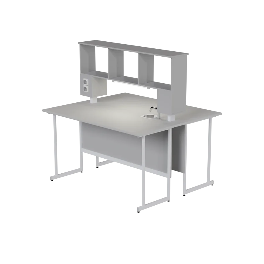 Островные столы химические лабораторные (модели 1500-СОхСл, 1800-СОхСл, 1500-СОхК, 1800-СОхК, 1500-СОхТЛ, 1800-СОхТЛ) состоят из двух без зазоров прочно скрепленных столов шириной 800 мм и 600 мм, при этом на более широкий стол устанавливается технологическая надстройка.