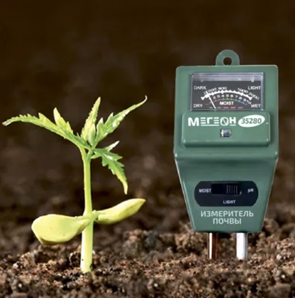 МЕГЕОН 35280 для почвы представляет собой уникальное устройство, которое позволяет контролировать сразу три важных параметра почвы: уровень pH, освещенность и влажность.