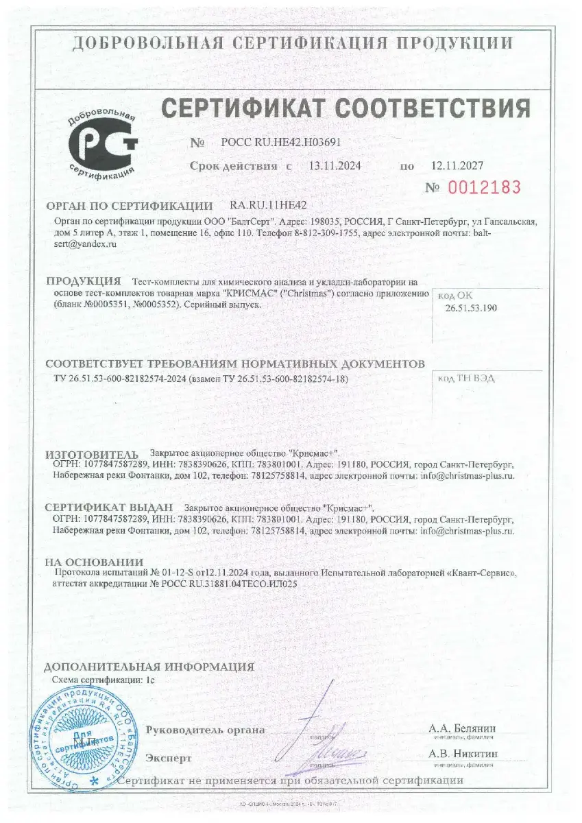 Все лаборатории РПЛ проходят внутрилабораторный контроль и техническую приёмку, после чего паспорта на изделия заверяются печатью ОТК производителя (ЗАО «Крисмас+»). Потребителю изделия поступают в опломбированном виде.
