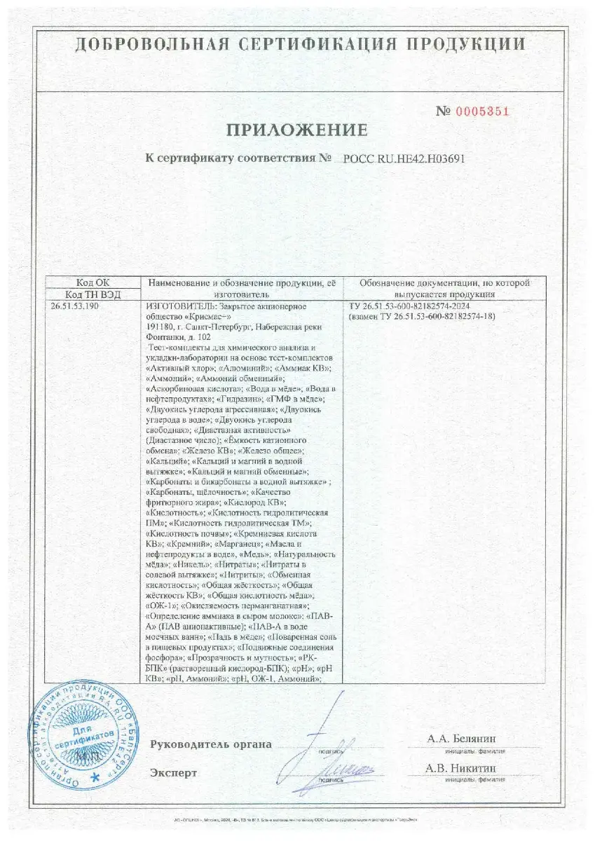 Определяемые при этом химические параметры, используемые для этого стандартизованные методы, а также диапазоны определяемых показателей указаны в таблице №1 вкладки «Характеристики».