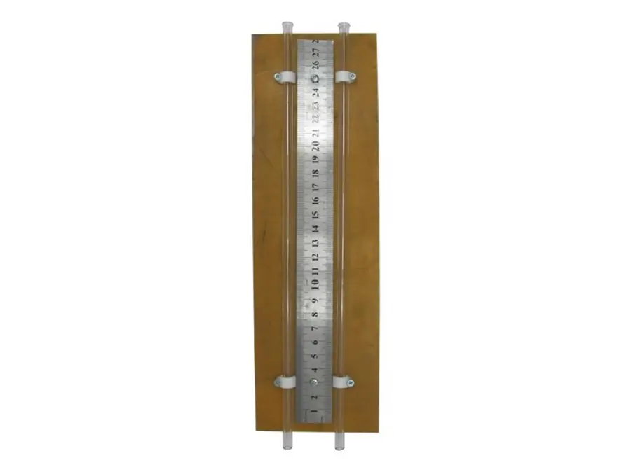 К верней части цилиндра с помощью штуцера подсоединен пьезометр (водомерная трубка) со шкалой измерения уровня воды от 0 до 50 мм (цена деления 5 мм).