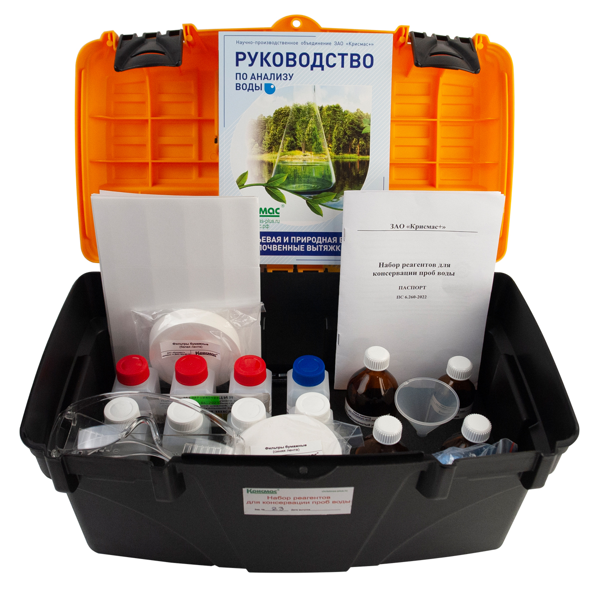 Набор позволяет выполнить необходимое консервирование не менее 100 проб воды объёмом 100 мл каждая по каждому из 18 показателей качества воды.