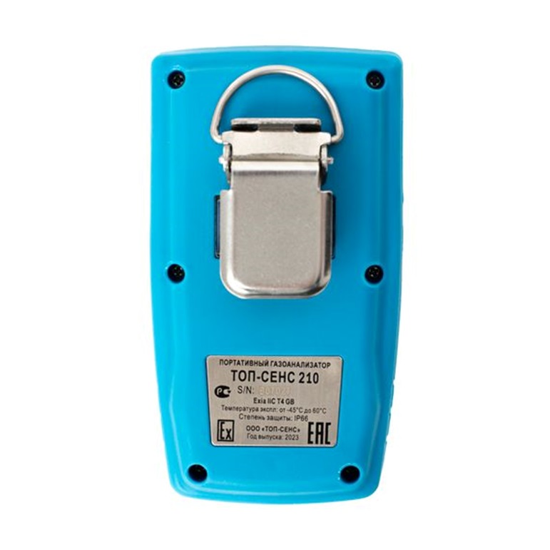 Газоанализатор ТОП-СЕНС 210 подходит для защиты от взрывов газа, недостатка кислорода и для обнаружения утечек токсичных газов. Анализируемый газ — H2S, а также горючие и токсичные газы.