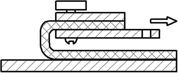 - приподнять подготовленную полосу покрытия и закрепить в зажиме устройства