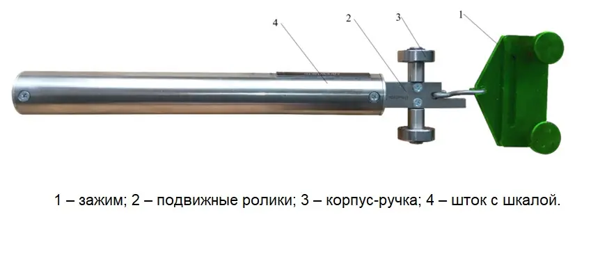 Прибор представляет собой цилиндрический корпус-ручку (3) со встроенным динамометром.
