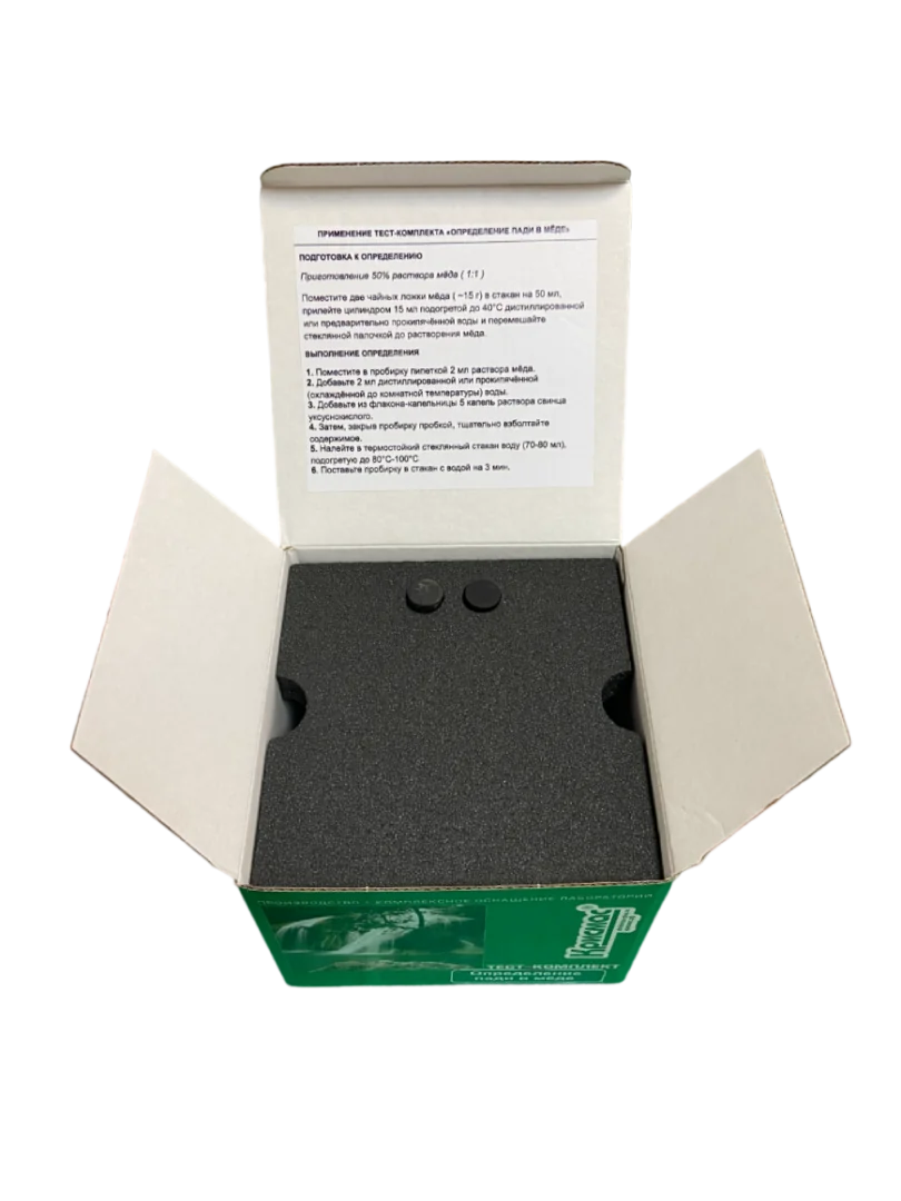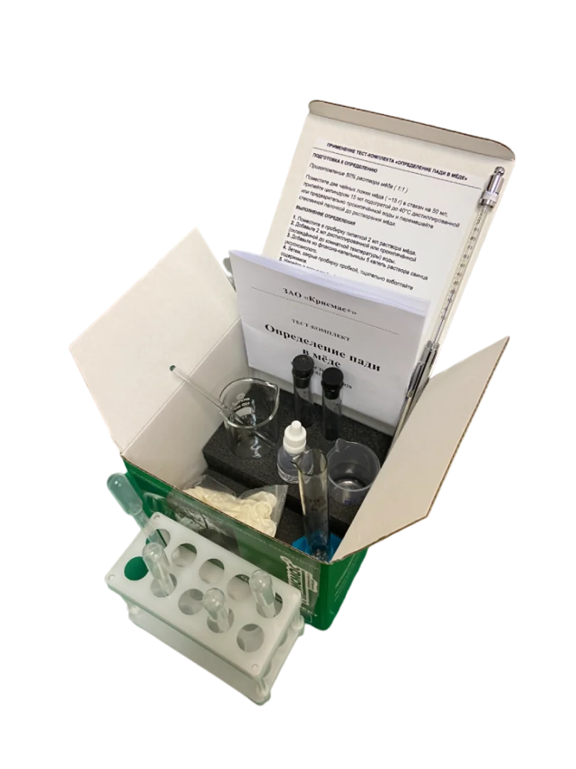 Тест-комплект максимально прост и удобен в использовании, позволяет при минимальных затратах осуществлять полноценное определение пади в мёде.