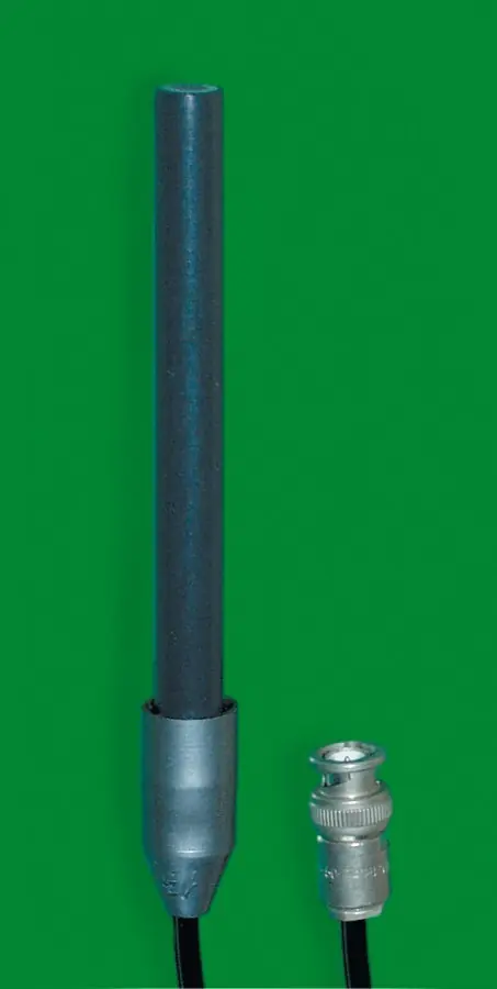 Внутри корпуса размещен электрод в виде металлической проволоки, герметично впаянной в колпачок, закрывающий верхний торец корпуса и обеспечивающий контакт проволоки с коаксиальным кабелем, снабженным разъемом, соединяющим электрод с электрометрическим преобразователем.