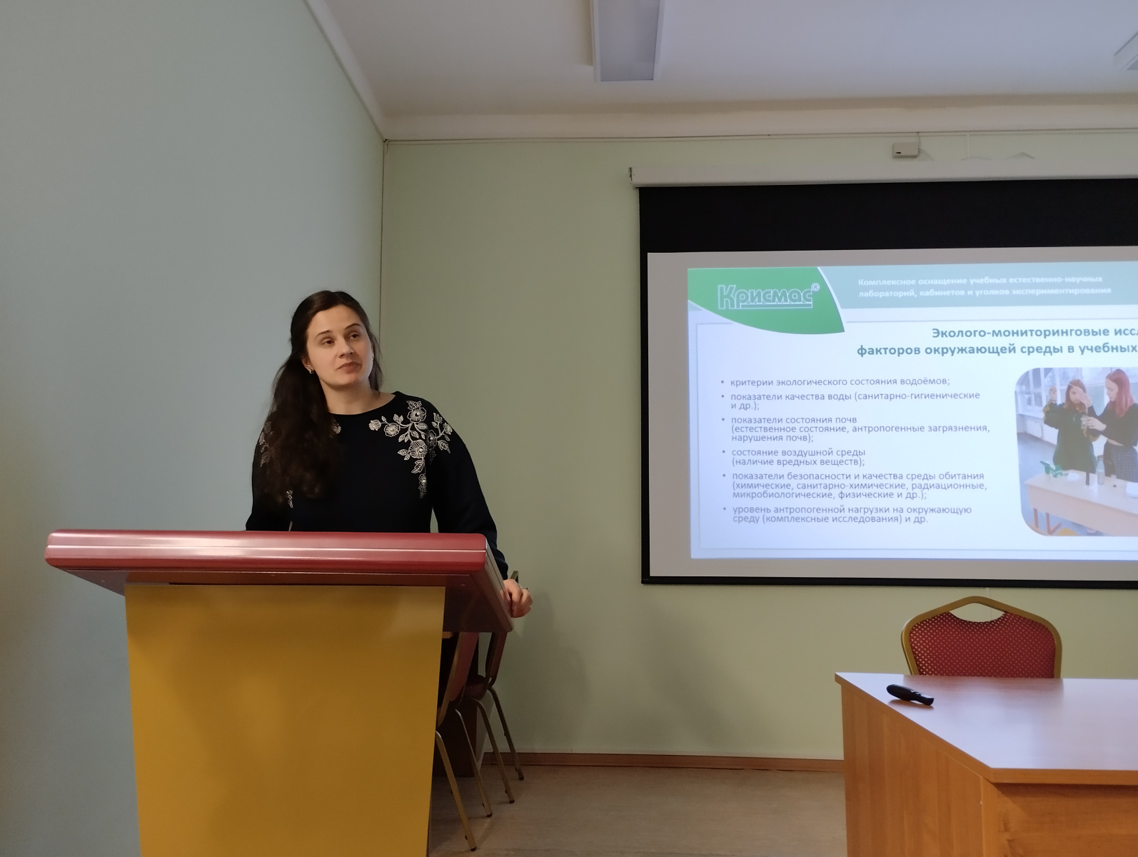 Алла Геннадьевна выступила с докладом на тему «Возможности проведения реальных практических исследований в окружающей среде в сочетании с инструментами цифровой дидактики».
