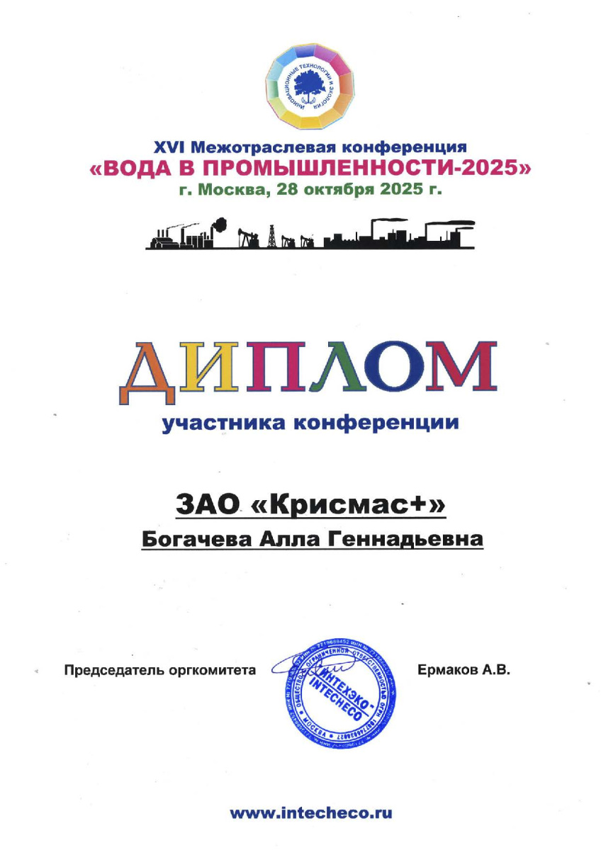 Участники конференции проявили высокий интерес к представленным технологиям, отметив их практическую применимость и соответствие современным тенденциям развития водоподготовки и экологического мониторинга. Все слушатели получили раздаточные материалы ГК «Крисмас» с подробной информацией о продукции и примерах её использования.