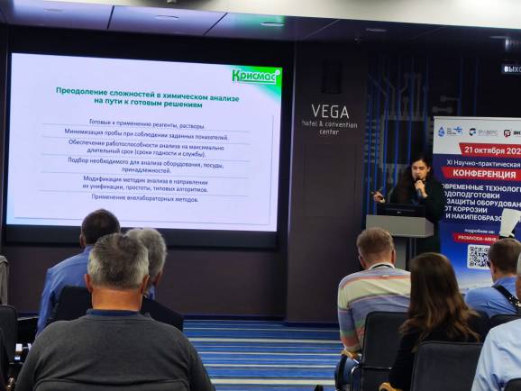В своем выступлении на тему «Характеристики готовых решений для водно-химического контроля. Применение портативного оборудования» она представила ключевые аспекты использования портативных приборов в теплоэнергетике. Особое внимание было уделено водно-химическим лабораториям модельного ряда ВХЭЛ, которые позволяют проводить химический контроль котловой воды непосредственно на объектах. Было отмечено, что такой подход значительно сокращает время и затраты, увеличивает срок эксплуатации котельного оборудования и предотвращает его выход из строя. Докладчик также рассказала о постоянной модернизации аналитической продукции «Крисмас» в соответствии с изменениями нормативной базы и технологическими инновациями.